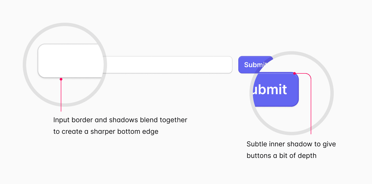 Para ser atemporales, intentamos encontrar el equilibrio adecuado entre el diseño plano y el esqueumórfico, con suficientes señales de profundidad para que nuestros componentes se vean geniales incluso si las tendencias cambian un poco en cualquier dirección.